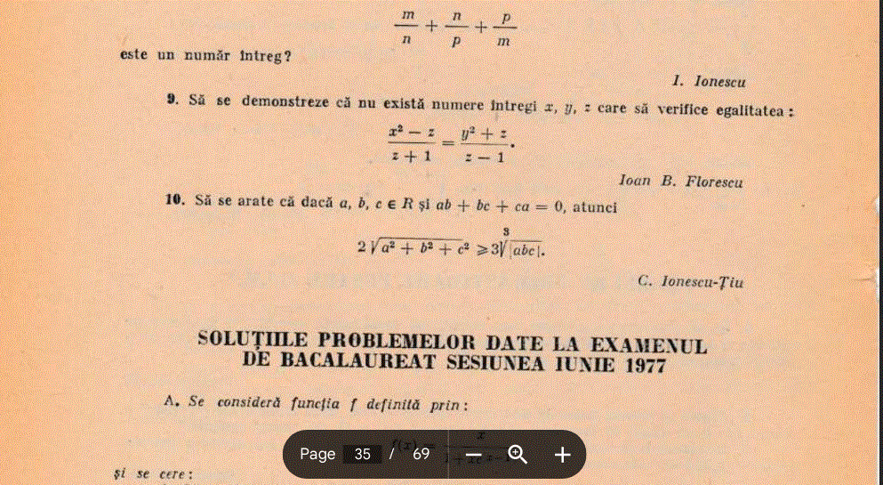 Un prieten mi-a permis accesul la Biblioteca lui Electronică. Acolo găsiți și o grămadă de Reviste de Matematică, scanate, dar au o parola pentru deschidere.Folosind Limbajul PYTHON--4 am reușit să sparg parola, care este :